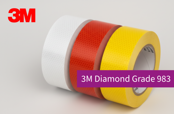 3M Diamond Grade™ Conspicuity Marking Series 983 is een microprismatische reflecterende folie met hoge retroreflectie en agressieve lijm, bedoeld om zij- en achterzichtbaarheid van voertuigen sterk te verbeteren.